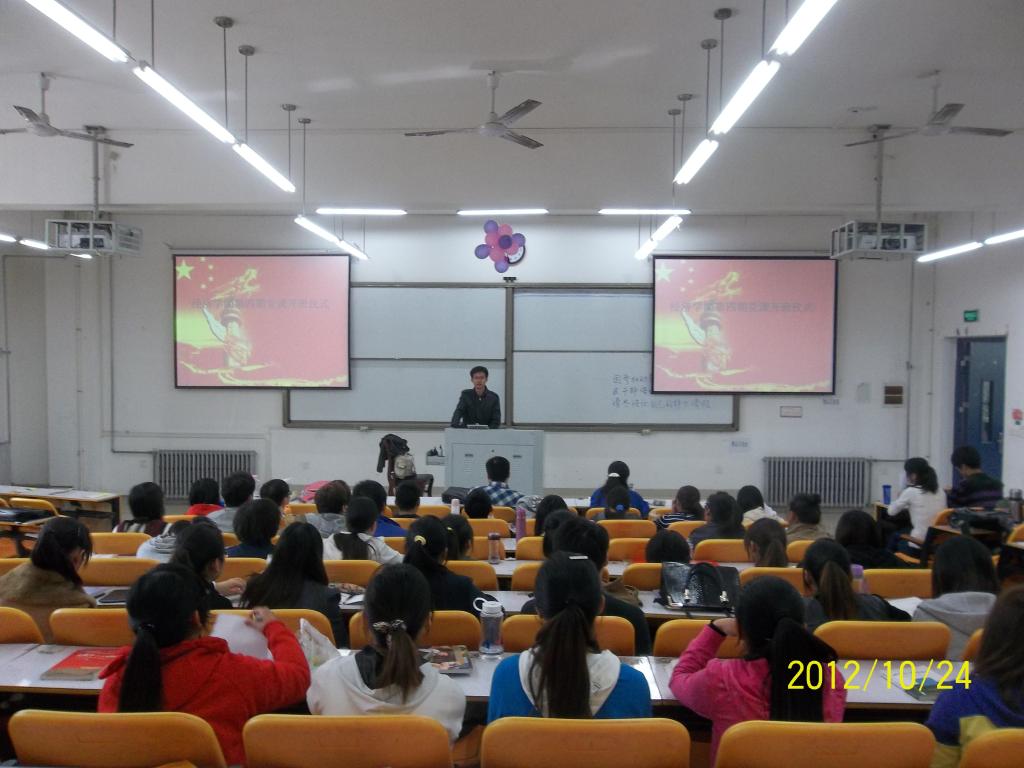 2012年10月24日中午十二点半,经济学院第四期入党积极分子培训班在教二117举行开班仪式。经济学院党委书记孙向东、党委副书记杨睿、团总支书记宋斌斌老师出席了此次开班仪式。仪式由宋斌斌老师主持,整个会场秩序井然。