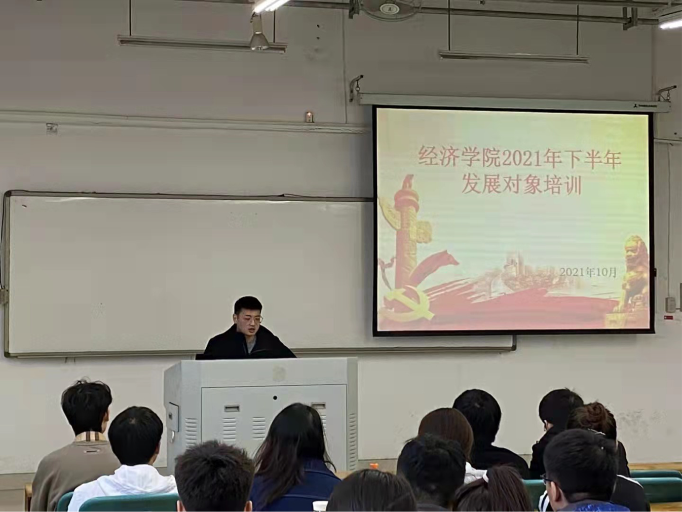 为教育引导入党发展对象端正入党动机,明确努力方向,以实际行动争取早日加入党组织,经济学院于2021年10月17日12点40分在教科楼206开展了本次发展对象第一次培训暨开班仪式。团委书记魏梦媛、辅导员罗钊担任主讲人。
