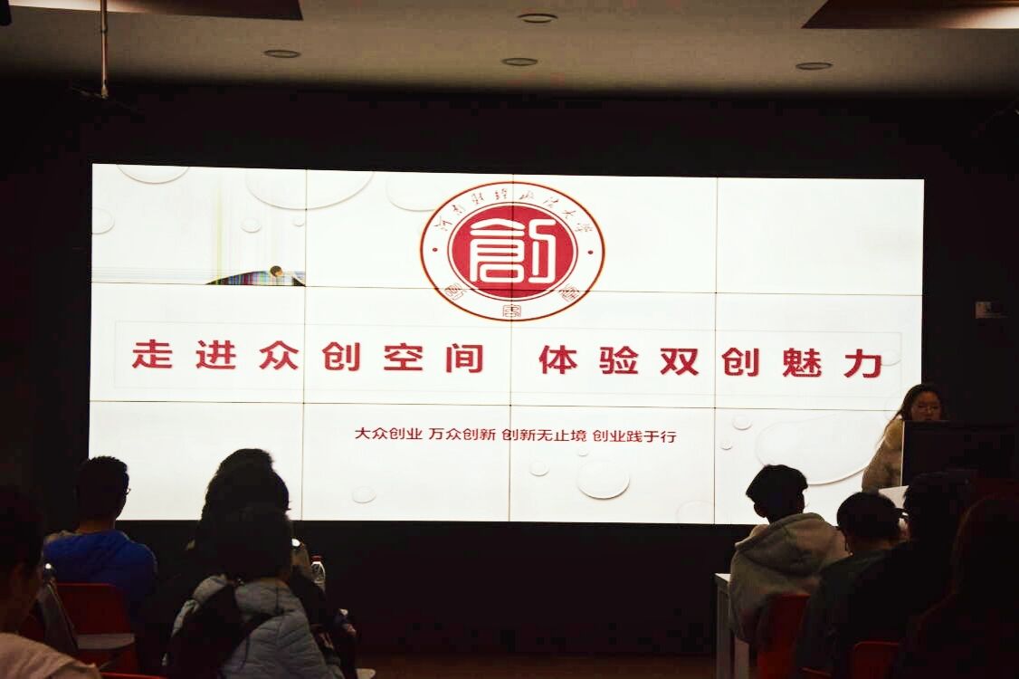 参观活动过程中,引导员通过实地讲解向大家介绍众创空间的组织架构,通过向同学们介绍众创空间的服务效果,即一些成功案例,增强了新生对创新创业顺利进行的信心,使有想法、有创新意识的新生了解加深,激励他们努力把握今后的一些创业机会。在宣讲室中,讲解员为大家简单介绍了目前入驻众创空间的大型项目及我校项目入驻的政策、条件和具体流程等,鼓励同学们积极创新创业。