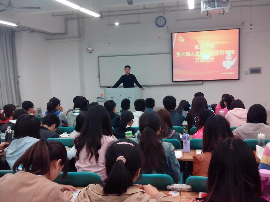 为了适应新形势党建发展的要求,加深入党积极分子对党的性质、宗旨、任务等方面的认识,经济学院于2014年3月25日19时在教科116室举办了旨在引导入党积极分子端正入党动机、坚定入党信念的入党积极分子培训开班仪式,经济学院党委书记孙向东、党委副书记杨睿、学生党支部书记宋斌斌出席了本次仪式。