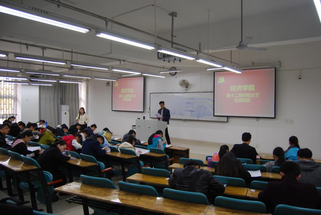 为积极响应校党校的号召,检验入党积极分子在培训班中的学习成果, 11月15日中午,经济学院在科教楼109室举行了入党积极分子培训班结业考试。经济学院第一学生党支部书记宋斌斌主监考,经济学院全42名积极分子参加考试。