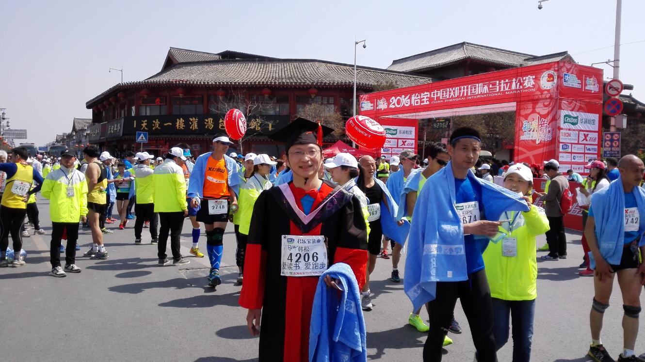3月27日上午,第十届郑开国际马拉松赛在郑州开跑,我院韩松老师身穿博士服参加马拉松全程,历时4小时27分16秒。