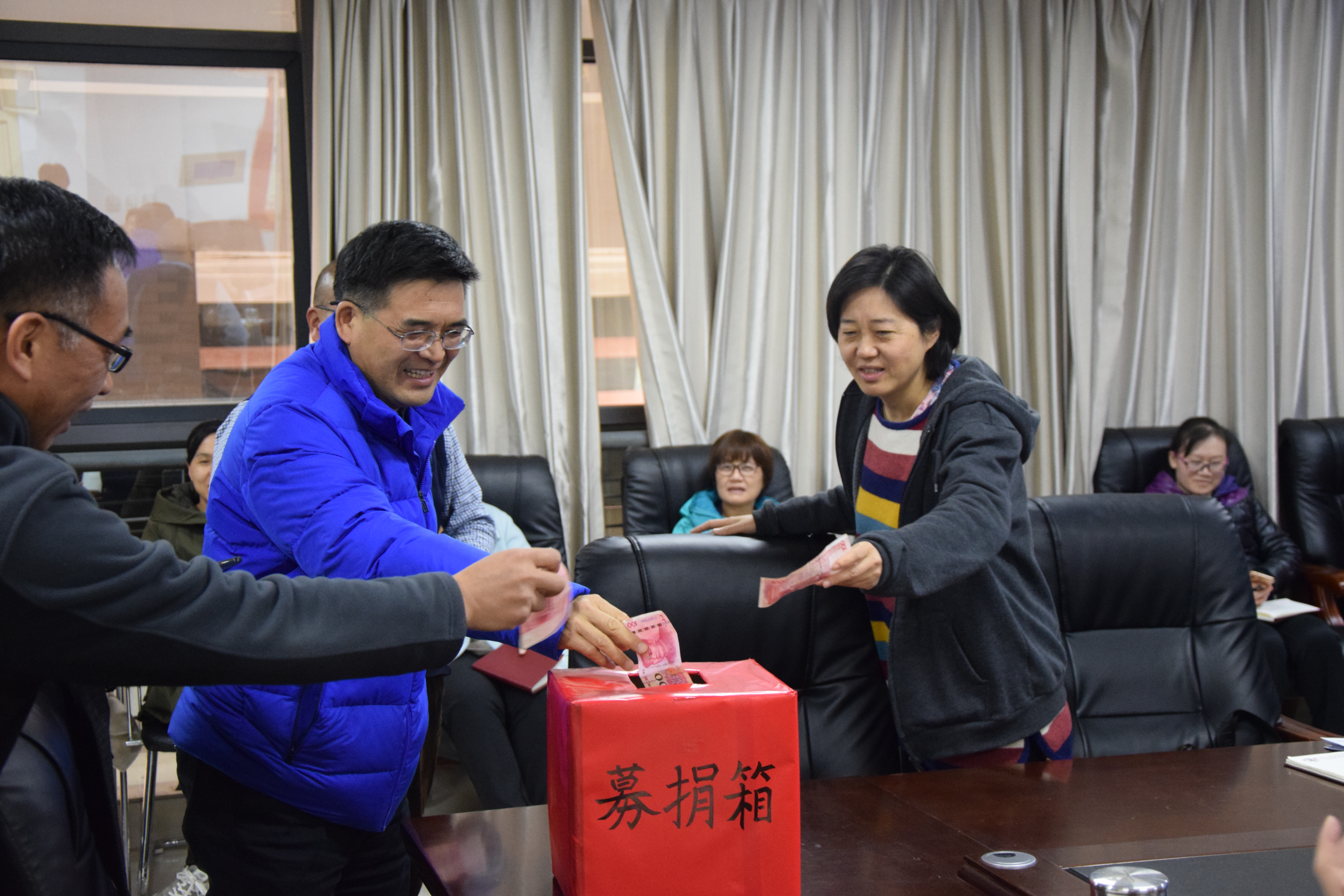 11月19日下午2点30分,经济学院于教学科研楼604会议室举办募捐大会,我院院长朱红恒、副院长刘方、副院长靳平、党委副书记刘昆峰等参与此次募捐大会。